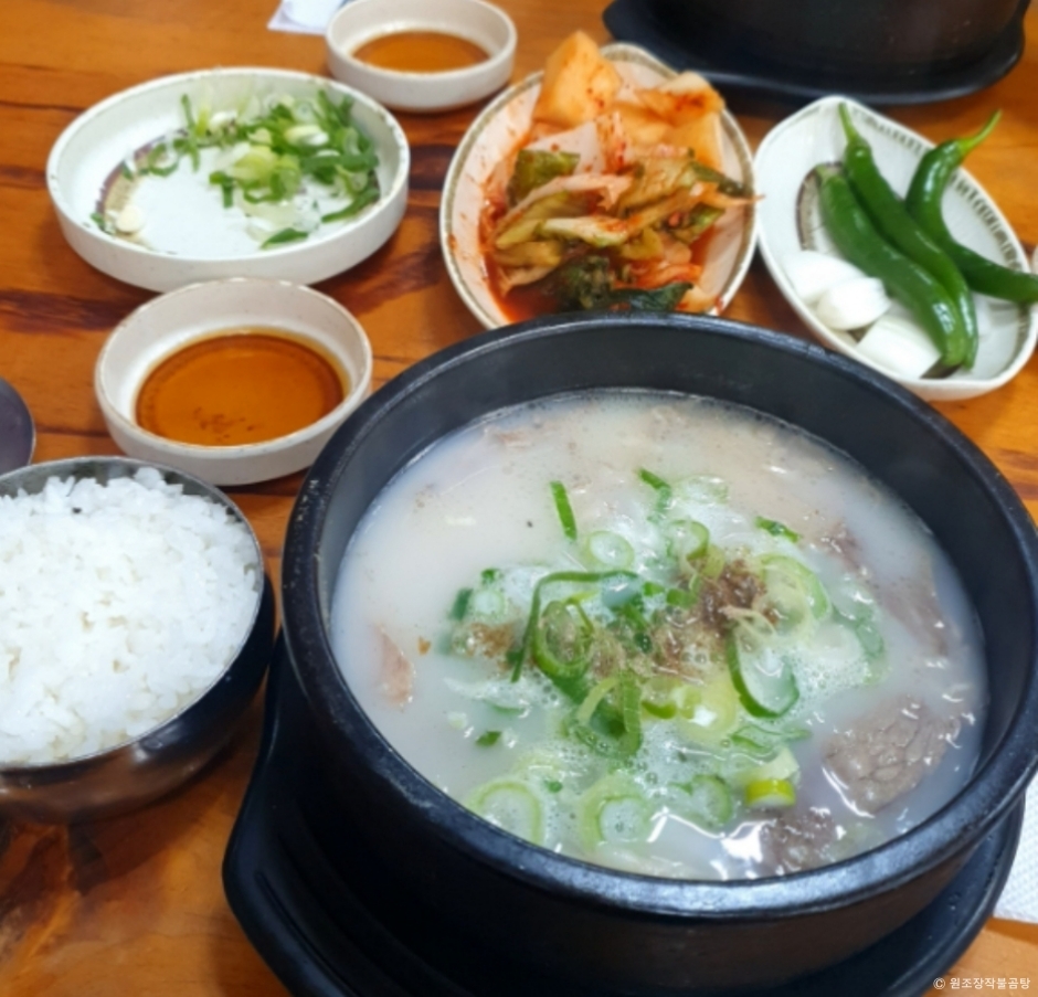 원조장작불곰탕은 장작불에 가마솥을 걸어 깊고 진한 국물을 우려내는 곰탕 전문점으로, VJ특공대와 생생정보 등 방송에도 소개된 바 있습니다. 대표 메뉴인 장작불곰탕은 뽀얗고 구수한 국물에 부드러운 고기가 듬뿍 들어 있으며, 차돌박이곰탕, 무릎도가니탕, 꼬리곰탕 등 다양한 메뉴도 제공합니다 . 밑반찬으로는 배추김치와 깍두기가 제공되며, 고추와 양파는 주인이 직접 담근 장에 찍어 먹는 방식입니다. 매장 앞에 넓은 주차 공간이 마련되어 있어 차량 이용 시 편리합니다. 서울에서 춘천으로 향하는 경춘로를 따라 이동 중이라면, 원조장작불곰탕에서 든든한 한 끼를 즐겨보시길 추천드립니다.