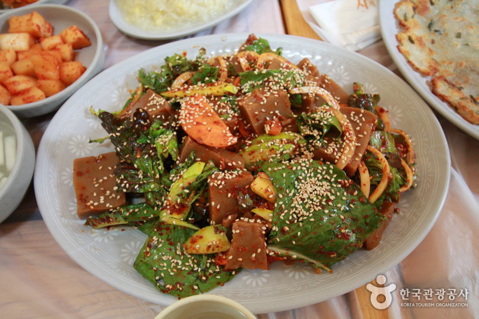 금강막국수는 50년 전통을 자랑하는 막국수 전문점으로, 현지인과 관광객 모두에게 사랑받는 맛집입니다. 이곳의 대표 메뉴는 비빔막국수로, 메밀면에 고소한 양념장과 무생채, 열무김치, 김가루, 삶은 계란 등이 어우러져 깊은 풍미를 자랑합니다. 특히 따뜻한 육수가 함께 제공되어, 식사 전 입맛을 돋우기에 좋습니다. 사이드 메뉴로는 도톰하고 고소한 녹두전과 메밀전, 부드러운 수육 등이 있으며, 겨울철에는 김치만두국과 들깨칼국수도 즐길 수 있습니다. 또한, 사전 예약 시 토종닭으로 만든 닭도리탕도 맛볼 수 있습니다. 식당은 전통 한옥을 개조한 듯한 정겨운 분위기로, 좌식과 입식 좌석이 모두 마련되어 있어 가족 단위 방문객에게도 적합합니다.