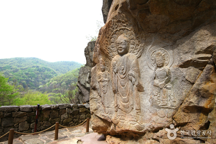 마애삼존불은 산세와 어우러진 신비로운 불상으로, 역사적 가치가 큽니다. 백제시대의 뛰어난 불교조각을 감상할 수 있으며, 불상의 온화한 표정이 많은 이들의 마음을 사로잡고 있습니다. 이곳은 불교 신자뿐만 아니라 자연을 즐기는 이들에게도 매력적인 장소로, 주위의 경치와 함께 명상이나 사색하기 좋은 환경을 제공합니다. 방문객들은 불상 앞에서 기도를 하며 마음의 평화를 찾기도 합니다.